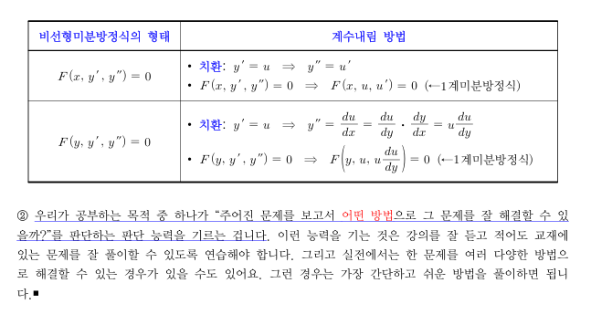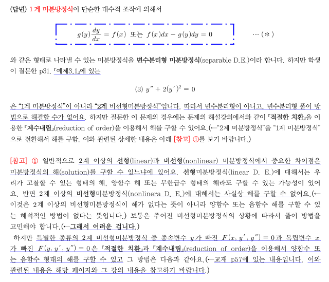 앞서 변수분리형 미분방정식 파트를 다시 보면 y가 1계일 때만 변수분리형으로 취급하는것 같다는 생각도 듭니다.