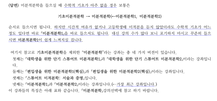 대학기초미분적분학만 하고도 스튜어트 미분적분학 들어도 할만할까요? 아님 고등과정 선택과목 미적분을 공부하고 스튜어트를 들어야할까요?