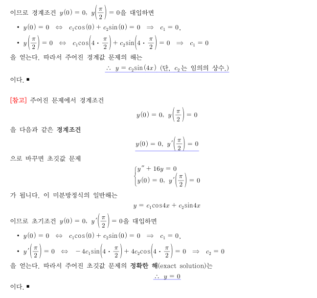 경계값 문제는 그 경계에서의 정확한 해를 구하는 것인지 일반해를 구하는 것인지, 아니면 경우에따라 정확한 해가 되기도 하고 일반해가 되기도 하는 것인지 궁금합니다.