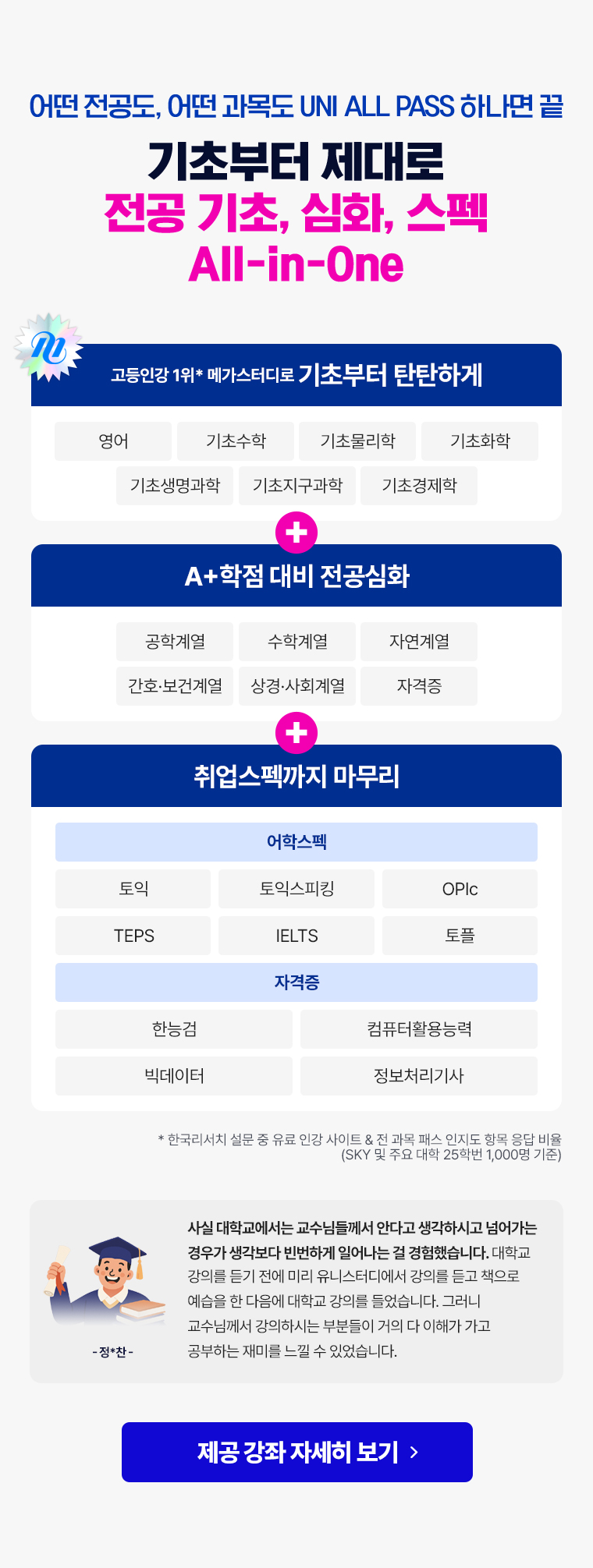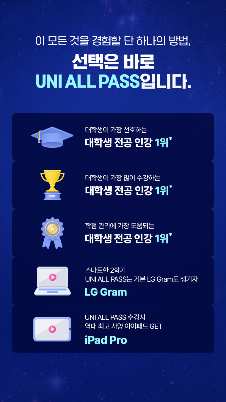 전공 기초부터 심화, 어학, 자격증까지 ALL IN ONE 더욱 막강해진 유니스터디 ALL PASS