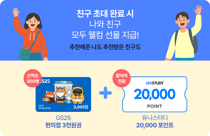 GS25 편의점 쿠폰, 유니스터디 20,000 포인트를 드립니다.
