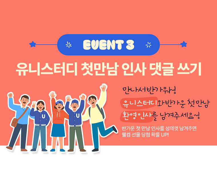만나서 반가워~! 유니스터디와 반가운 첫 만남 환영 인사를 남겨주세요~!