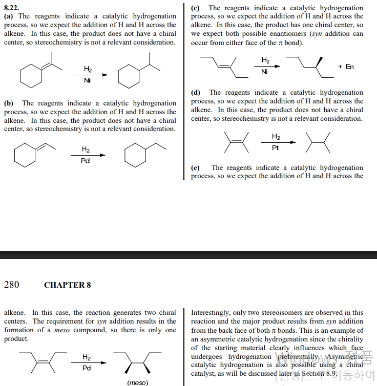 1. (c)의 경우 알켄에 대한 수소첨가를 종이 앞면과 뒷면에서 모두 할 수 있습니다.