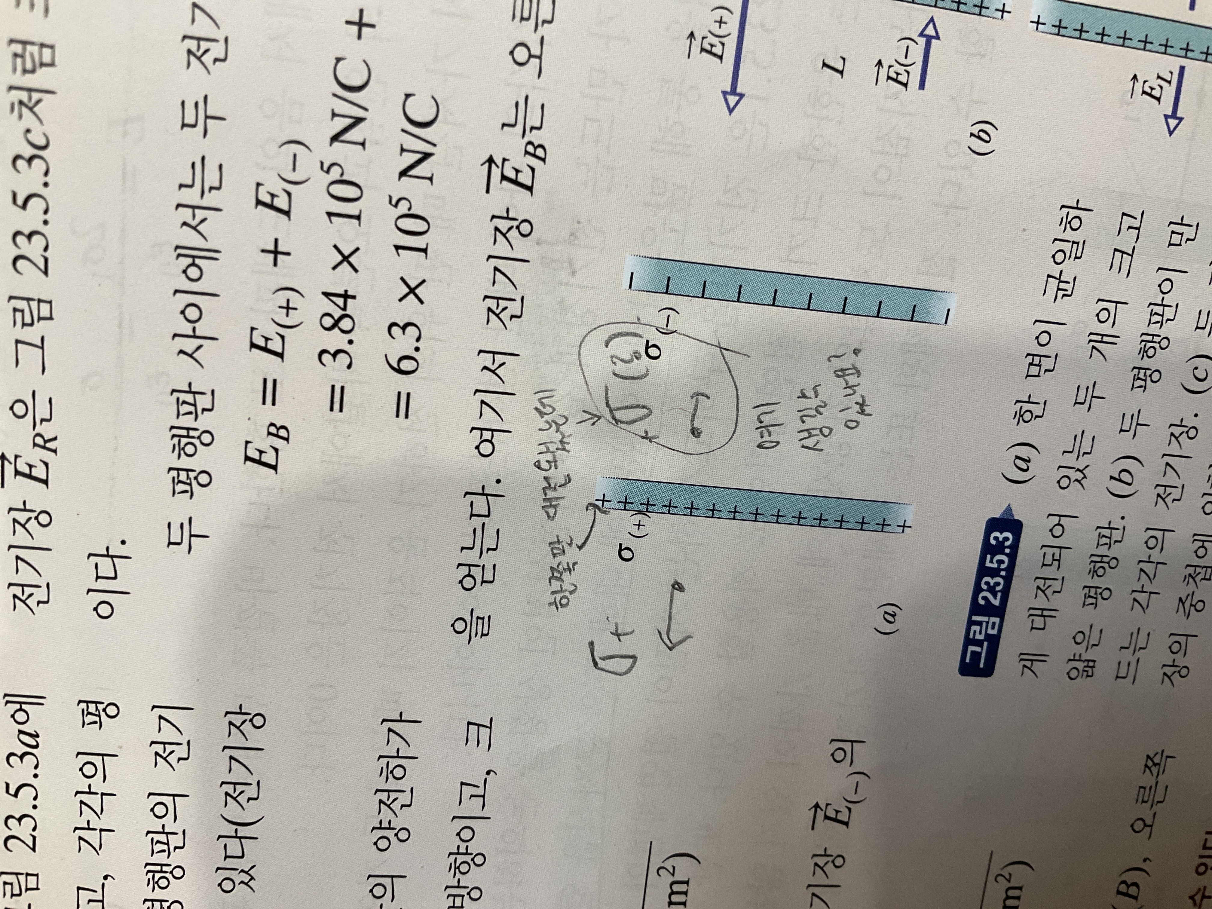 얇은 판이라는 언급도 따로 없고, 대전되는 상황도 아닌듯한데, 한쪽 면에만 대전된 평형판의 양쪽 모두 전기장이 생기는 이유가 궁금합니다