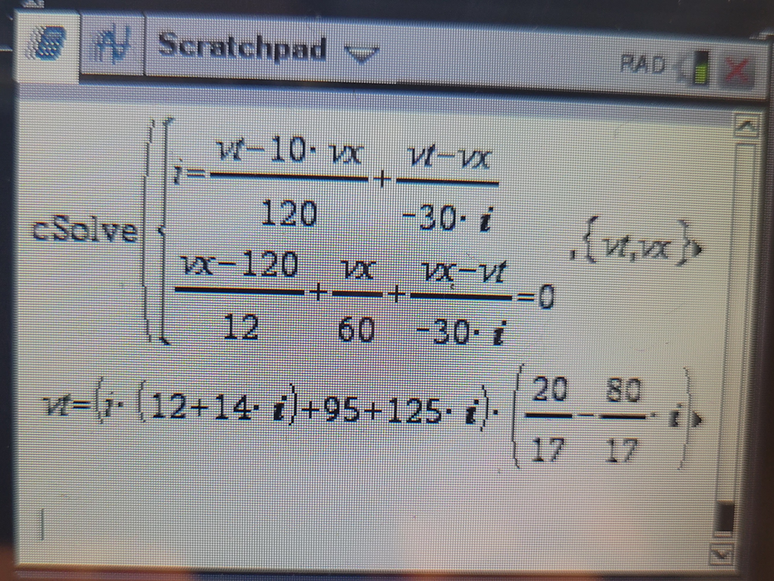 올려주신 계산기입력은 solve명령어입력이므로 solve 앞에 c만 붙여주시면 됩니다. 한번 확인해 보세요.