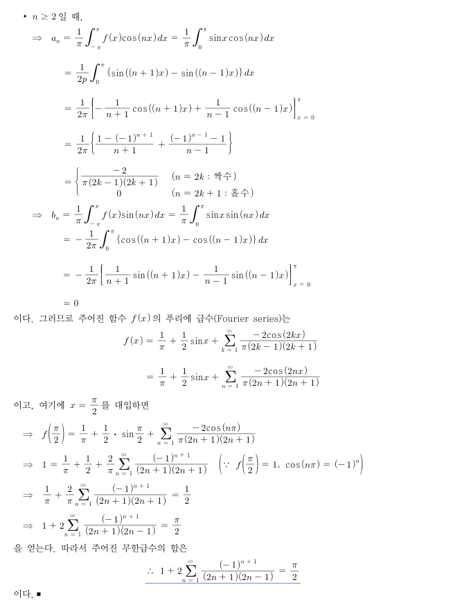 an, bn 분모에 n-1이 있어서 n=1인 경우에 분모가0이 되니,