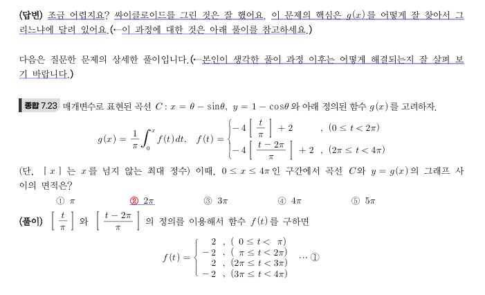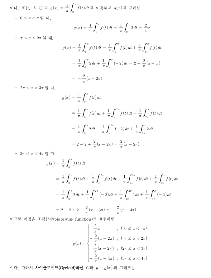 다만, 이후 g(x)를 표현할때 x가 pi가 되는 시점에는 피적분값이 -2로 변하는데 이걸 어떻게 g(x)로 표현해야 할지 궁금하여 질문드립니다.