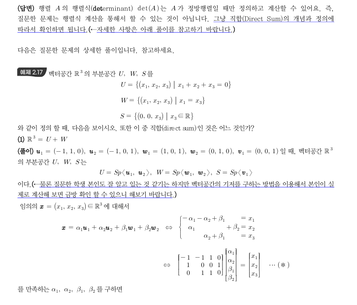 그렇다고 det을 해서 하나가 종속임을 보이는 것도 방법 같은데